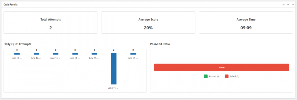 Built-in progress bars keep test-takers informed of their position. Store and display detailed quiz results for both you and your customers.